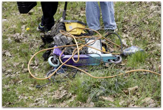 Druga skupina je čistila ob vseh poteh proti vasi Pesje in okrog ob nadomestnem habitatu za dvoživke NH6 ter kanalu ob akumulacijskem jezeru. Neverjetna količina in raznovrstnost odpadkov nas še vedno preseneča, saj poleg običajnih, ki smo jih ob naših akcijah vajeni, naletimo tudi na razpadajoče smrdeče odpadke v pvc vrečah, nevarne zdrobljene steklene predmete na poteh, katerih koščke smo z rokami pobirali v vreče, raznovrstnost pa si lahko ogledate na priloženih fotografijah.
